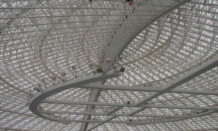 该网架加工东兴公司名目师表示,比来几年来国内能源根底设置装备摆设装备摆设建立步伐加快,包括核电站用钢、风电用钢、锅炉用钢架等,表现出历久需要茂密。铁路纽带运输本领已经发展成为纽带和纽带的一种趋势。诸如城市地铁、轻轨、城铁和高架桥等城市建筑用钢范围将会不休承继减少。在当下国内倡导的绿色低碳的可承继发展理念下,可摄取材料将会呈现网架化结构室第高速发展的卓越趋势。